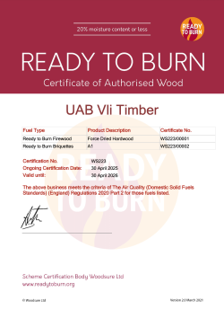 Woodsure – Ready to burn certificateThe Woodsure Certification scheme (Scheme No. WS223) comprehensively checks woodfuel producers to ensure that they produce and supply woodfuel to the correct standard.